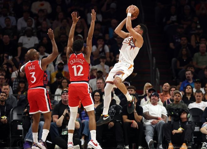 本场比赛前,快船宣布小卡继续休战,哈登因为个人原因缺席比赛!什么原因没说,但是时候检验一下这支快船真正的成色了。太阳这边开赛以来3胜5负,布克场均30+是常态,但无法带动队友,球队角色球员打开手感,能赢马刺;但也能输爵士、灰熊这样西部后几位的球队,起伏很大。不过本场比赛风雪哥杰伦格林终于等来了复出,迎来自己太阳生涯首秀!从两队首发就能看出最终的结局,太阳:杰伦格林+布克+阿伦+奥尼尔+马威;快船这边:比尔+邓恩+巴图姆+德里克琼斯+祖巴茨。